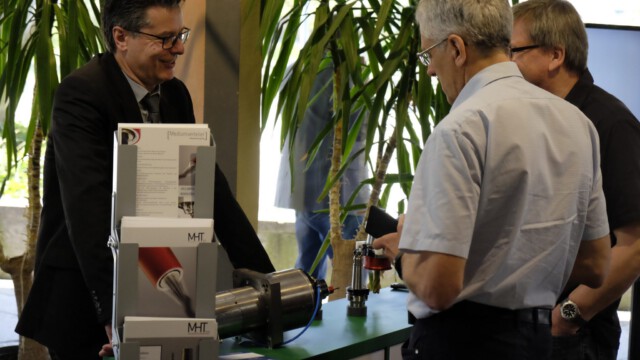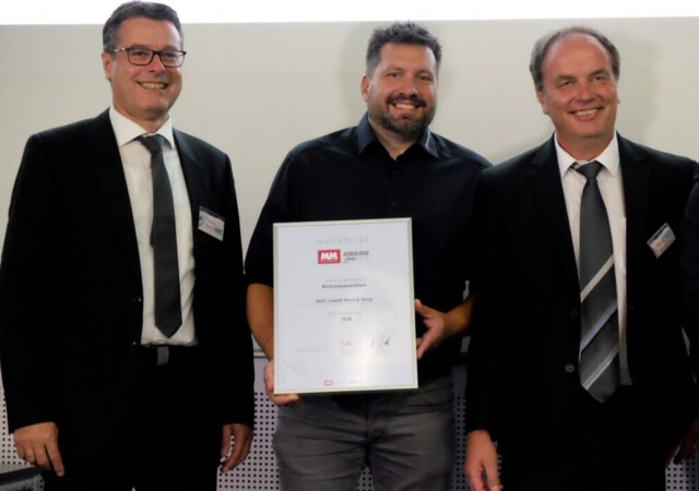Im Rahmen der Weltmesse AMB in Stuttgart wurde der Mediumverteiler IKM der Gebrüder Bähr GbR und der MHT GmbH für einen der begehrten Awards der Zeitschrift MaschinenMarkt nominiert. Im Wettbewerb schaffte es die Innovation in Sachen Trocken-Fräsen und Trocken-Bohren sogar auf die Shortlist in der Kategorie „Werkzeugmaschinen“ und kam hier unter die drei bestplatzierten Unternehmen. Die MaschinenMarkt-Chefredakteure Benedikt Hofmann und Udo Schnell überreichten dem Mediumverteiler-Team auf der Messe in Stuttgart die begehrte Auszeichnung mit den besten Glückwünschen.